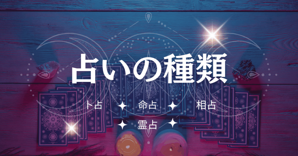 占いの種類と特徴 ひと口に「占い」といっても、その方法や得意分野はさまざまです。 ここでは、電話占いでもよく使われる4つの占いの系統を簡単にご紹介しますね。 🔮 命占(めいせん) 生年月日や生まれた時間など、変わらない情報をもとに その人の性... -